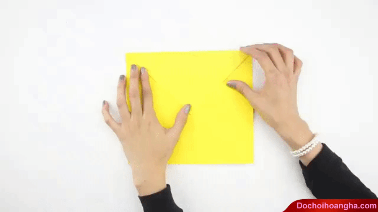 Nhớ rằng các góc nhọn phải hướng về phía bạn khi gấp. Nếu không thì các nếp gấp sẽ không thẳng hàng.